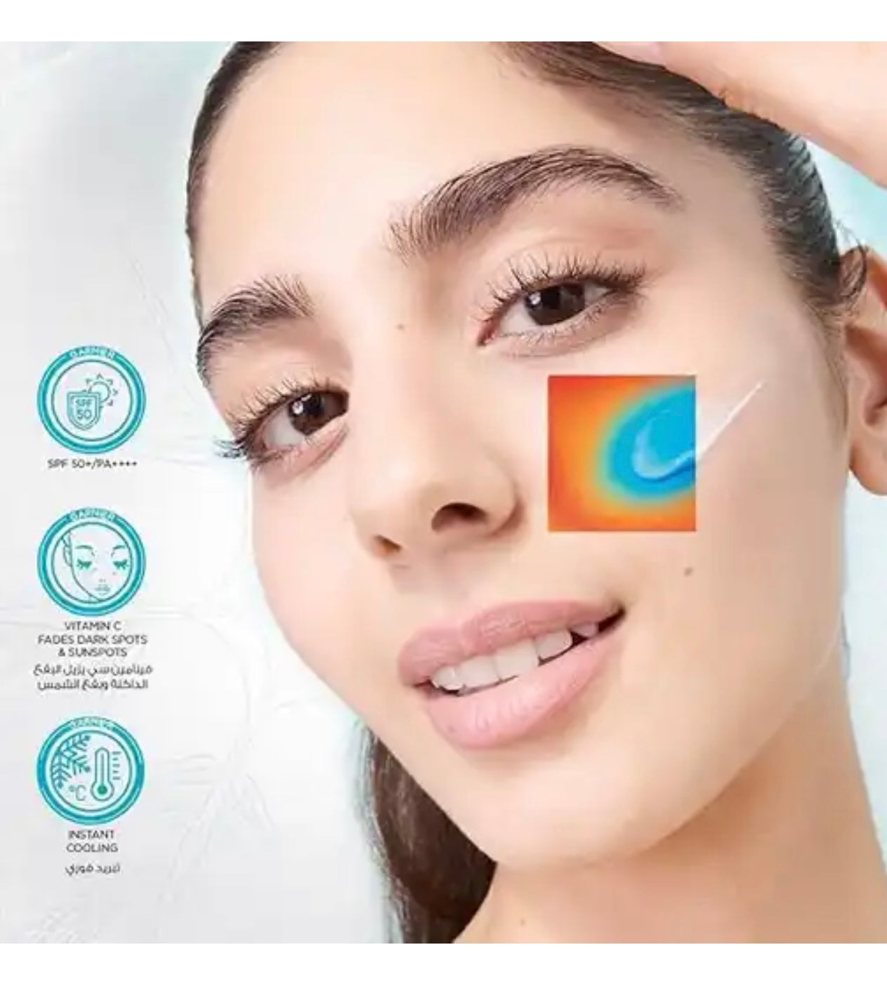 Garnier sunscreen that instantly cools your skin down by -2C, while giving you protection from sun-damage 1. Broad spectrum protection from UV rays (UVA + UVB) 2. 8-hour freshness and instant cooling of skin up to -2C Vitamin Cg consumer test Vitamin Cg consumer test Fresh water gel texture No white cast Make-up compatible non-comedogenic. Use at the end of your skincare routine (before applying makeup) as a daily sunscreen. Shake well before use. Do not stay too long in the sun, even while using a sunscreen product.