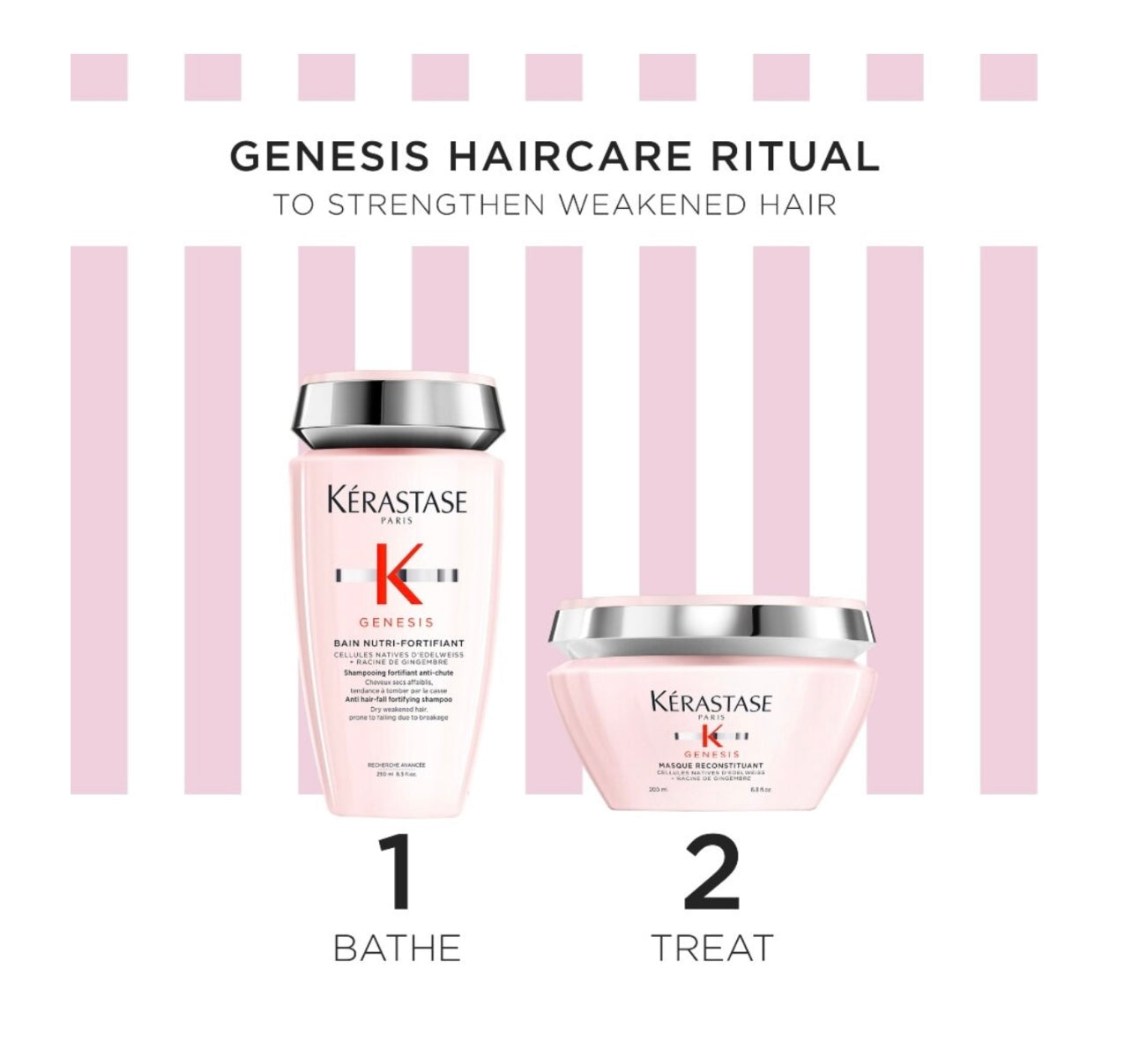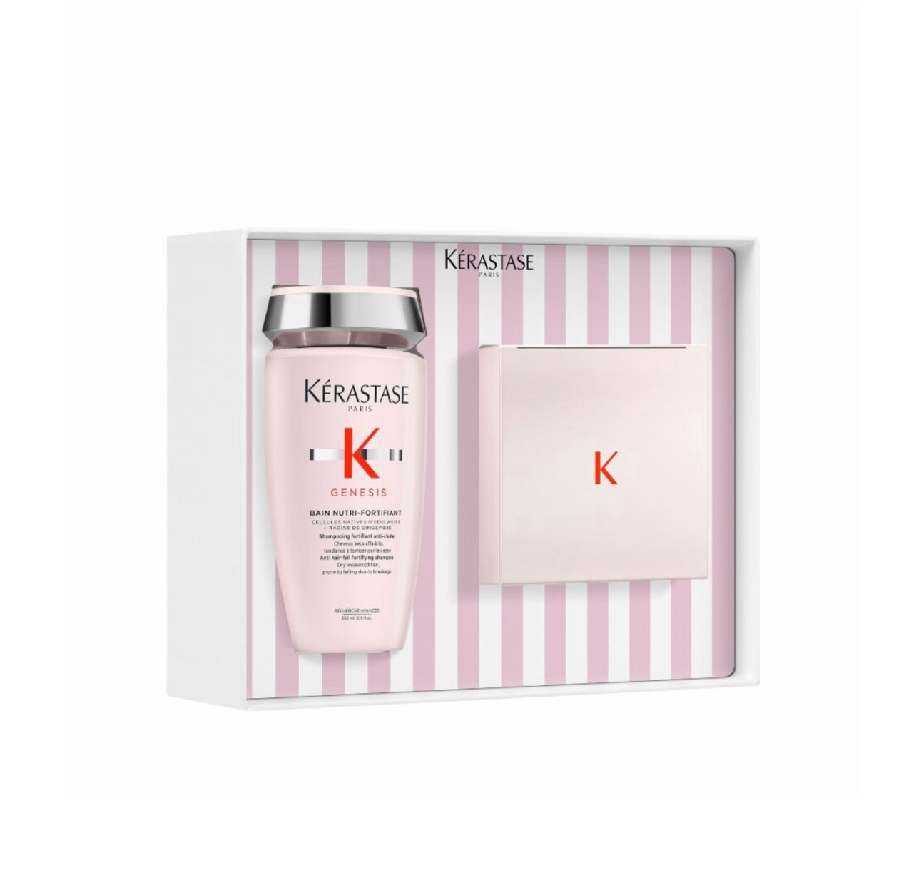 Formulated for fragile or thinning hair, this set combines a nutrient-rich shampoo texture with a dense restorative mask. The Bain Nutri-Fortifiant cleanses gently while nourishing and strengthening the fiber using edelweiss and ginger root. The Masque Reconstituant penetrates the hair to rebuild strength, reduce breakage, and promote resilience.